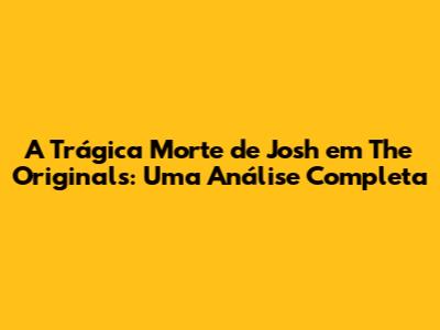 Impacto e Consequências da Morte de Josh em The Originals