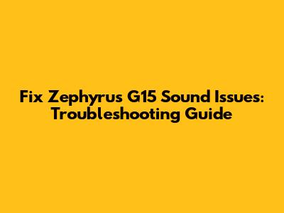 Fix Zephyrus G15 Sound Issues: Troubleshooting Guide