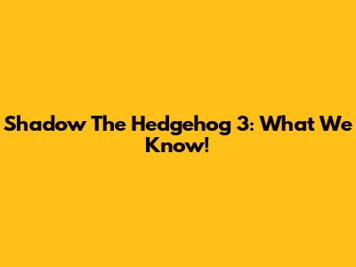 Shadow The Hedgehog 3: What We Know!