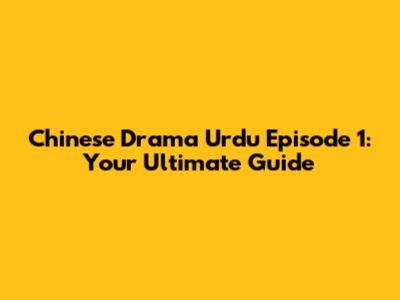 Chinese Drama Urdu Episode 1: Your Ultimate Guide