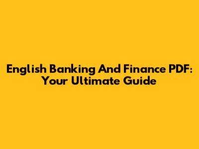 English Banking And Finance PDF: Your Ultimate Guide