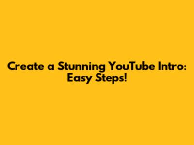 Step-by-Step Guide to Creating an Easy YouTube Intro