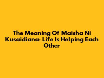 The Meaning Of 'Maisha Ni Kusaidiana': Life Is Helping Each Other