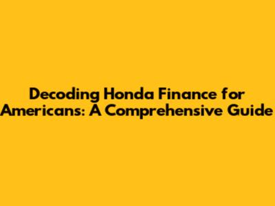 Alright, folks, let's dive headfirst into the world of Honda finance! If you're an American with your eyes set on a shiny new Honda, or even a pre-owned one, understanding how financing works is absolutely crucial. This guide is your friendly companion, designed to break down the complexities of Honda financing, ensuring you can navigate the process with confidence and clarity. We'll cover everything from the basics to the nitty-gritty details, helping you make informed decisions and secure the best possible deal for your needs. Think of it as your one-stop shop for all things Honda finance, tailored specifically for us Americans.