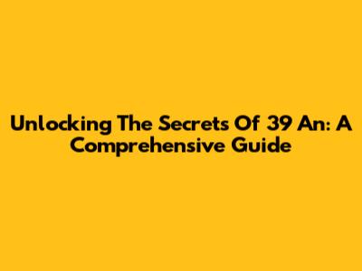 Unlocking The Secrets Of 39 An: A Comprehensive Guide