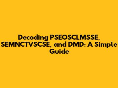 Let's dive into the world of acronyms! Ever stumbled upon PSEOSCLMSSE, SEMNCTVSCSE, or DMD and felt like you needed a secret decoder ring? You're not alone! These abbreviations might seem like alphabet soup at first glance, but don't worry, we're here to break them down in a way that's easy to understand. Whether you're a student, a professional, or just a curious soul, understanding these terms can be incredibly useful. We'll explore each acronym, uncover its meaning, and provide real-world examples to help you grasp the concepts. So, buckle up, and let's demystify these abbreviations together! You will find this guide super helpful, and you can always refer back to it whenever you need a refresher. We'll start with the basics and gradually build your understanding, ensuring you're comfortable with each term before moving on. Think of this as your friendly guide to navigating the world of acronyms – no jargon, just clear and simple explanations. And hey, don't be afraid to ask questions! Learning is all about exploring and understanding, so feel free to dig deeper and expand your knowledge. Let’s get started on this enlightening journey! We’ll make sure you leave here feeling confident and ready to tackle any acronym that comes your way. Are you ready? Let's jump right in!