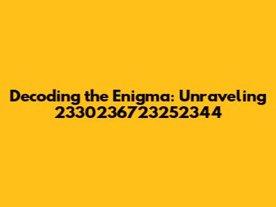 Hey guys! Ever stumble upon a sequence of numbers and feel like you've stumbled upon a secret code? That's the vibe we're tackling today with the enigmatic 2330236723252344. This isn't just a random string of digits; it's a puzzle, a potential key, and we're gonna dig deep to figure out what it unlocks. We will explore various angles, from mathematical patterns and potential encoding methods to its possible significance in different contexts. So buckle up, because we're about to embark on a digital treasure hunt!