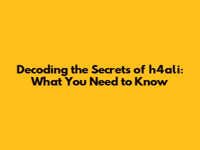 Unveiling h4ali: The Basics