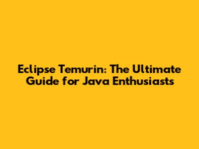 What is Eclipse Temurin? Unveiling the Java Powerhouse