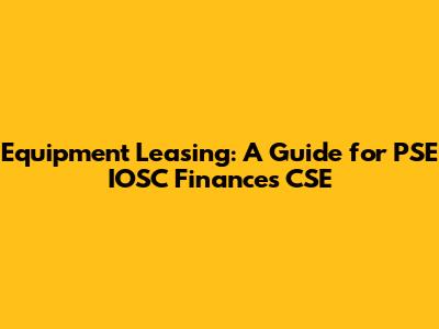 Hey guys! Ever wondered about equipment leasing, especially within the context of PSE IOSC Finances CSE? Let's break it down in a way that's super easy to understand. This guide will cover everything from the basics of equipment leasing to its specific relevance for companies operating under the Philippine Stock Exchange (PSE), the Investment Operations and Services Corporation (IOSC), and within the financial or Computer Science and Engineering (CSE) sectors. We will explore why leasing might be a smart move, how it works, and key considerations to keep in mind.