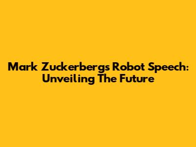 Mark Zuckerberg's Robot Speech: Unveiling The Future