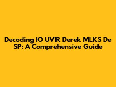 Decoding IO UVIR Derek MLKS De SP: A Comprehensive Guide