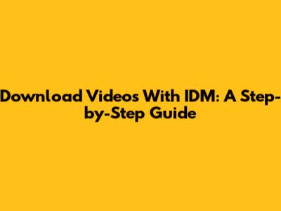Download Videos With IDM: A Step-by-Step Guide