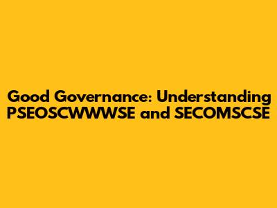 SECOMSCSE is another acronym that highlights essential elements of good governance. It stands for Security, Economy, Cooperation, Openness, Morality, Social Justice, Competence, and Service Orientation. This framework provides a comprehensive view of the qualities that contribute to effective and ethical governance. Let’s break down each component:
