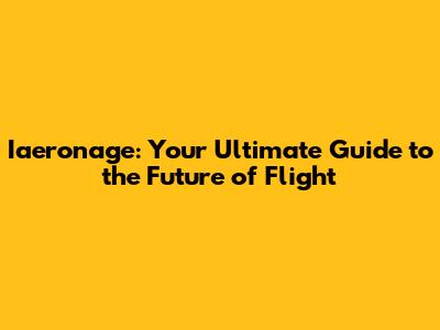 What Exactly is Iaeronage? The Core of Future Flight