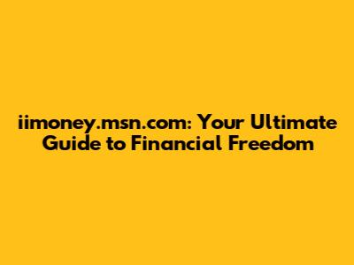 Iimoney.msn.com: Your Guide To Financial Freedom