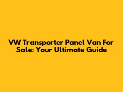 VW Transporter Panel Van For Sale: Your Ultimate Guide