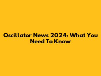 Oscillator News 2024: What You Need To Know