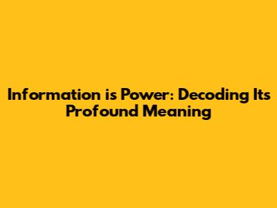 Hey everyone! Ever heard the phrase "information is power"? It's tossed around a lot, but have you ever really thought about what it truly means, especially in today's world? Well, let's dive deep and break it down. We're going to explore the core meaning, how it plays out in different contexts, and why it's more relevant than ever. This isn't just some old saying, folks; it's a fundamental principle shaping our lives, careers, and the very fabric of society. So, grab your favorite drink, and let's get into it.