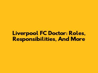 Liverpool FC Doctor: Roles, Responsibilities, And More