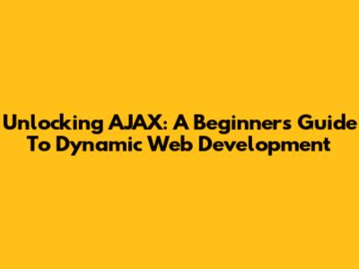 Unlocking AJAX: A Beginner's Guide To Dynamic Web Development