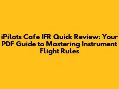 By following these tips, you can transform the iPilot's Cafe IFR Quick Review PDF into your go-to guide for IFR success. Remember, the key to mastering IFR is consistent effort and a willingness to learn. This resource will provide you with the foundational knowledge and practical insights you need to excel.