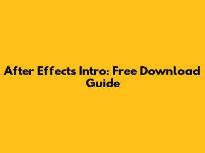After Effects Intro: Free Download Guide