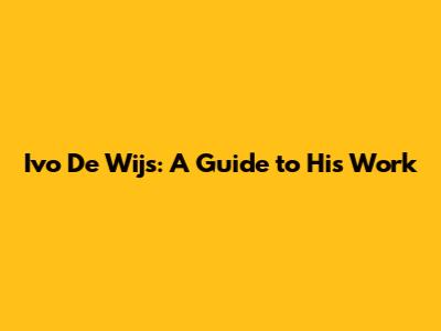 Ivo De Wijs: A Guide To His Work