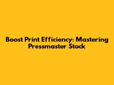 Boost Print Efficiency: Mastering Pressmaster Stock