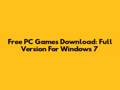 Free PC Games Download: Full Version For Windows 7