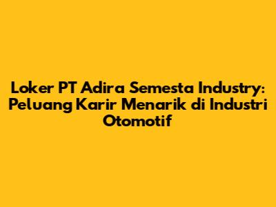 Hey guys! Are you on the hunt for a new job? Maybe you're looking to level up your career game? Well, today we're diving deep into loker PT Adira Semesta Industry, a company that's making waves in the automotive manufacturing sector. We'll be covering everything from available positions and their requirements to how to nail your application and what kind of perks you can expect. Buckle up, because we're about to explore some seriously cool career opportunities!