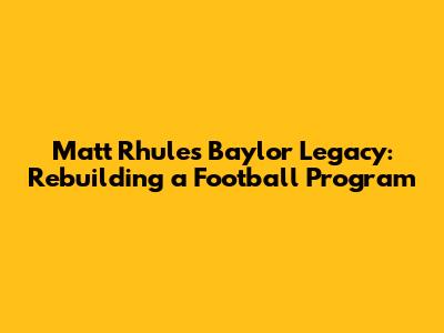 The Lasting Legacy: Matt Rhule's Enduring Impact on Baylor Football