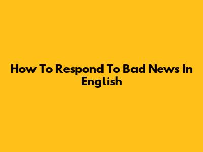 How To Respond To Bad News In English