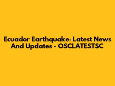 Ecuador Earthquake: Latest News And Updates - OSCLATESTSC
