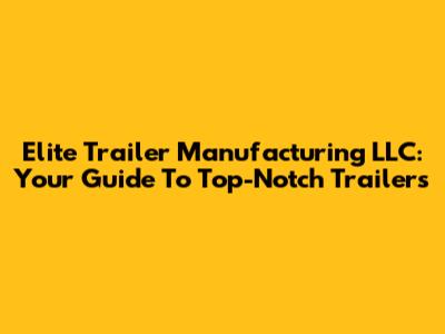 Elite Trailer Manufacturing LLC: Your Guide To Top-Notch Trailers