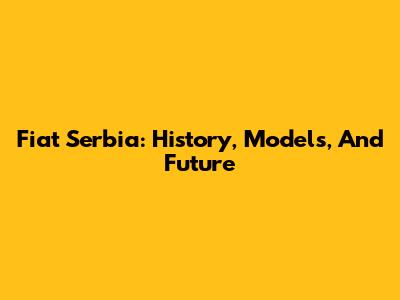 Fiat Serbia: History, Models, And Future
