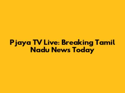 Pjaya TV Live: Breaking Tamil Nadu News Today