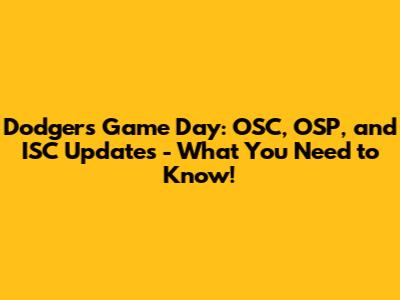Dodgers Game Day: OSC, OSP, and ISC Updates - What You Need to Know!