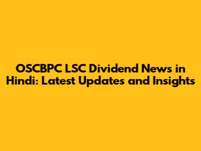 OSCBPC LSC Dividend: Latest News & Updates In Hindi