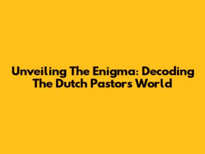 Unveiling The Enigma: Decoding The Dutch Pastor's World