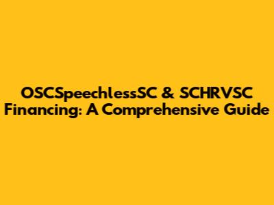 Hey guys! Let's dive into something that might sound a little complex at first: OSCSpeechlessSC and SCHRVSC financing. I know, the names might seem like a mouthful, but trust me, understanding them is super important, especially if you're looking to get involved in certain types of projects or investments. This guide is designed to break down everything you need to know in a clear, easy-to-understand way. We'll cover what these terms actually mean, why they matter, and how financing works within these specific contexts. Whether you're a seasoned investor or just starting out, this should provide you with a solid foundation. Let's get started, shall we?