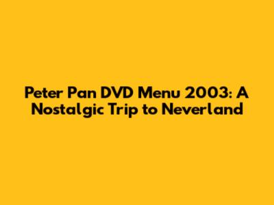 Hey guys! Let's dive into a bit of nostalgia, shall we? Today, we're taking a whimsical journey back to 2003, specifically to explore the Peter Pan DVD menu. Yes, you heard that right! While streaming services dominate our viewing habits now, there was a time when DVDs reigned supreme, and their menus were an art form in themselves. So, grab your pixie dust, and let’s fly!