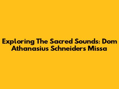 Exploring The Sacred Sounds: Dom Athanasius Schneider's Missa