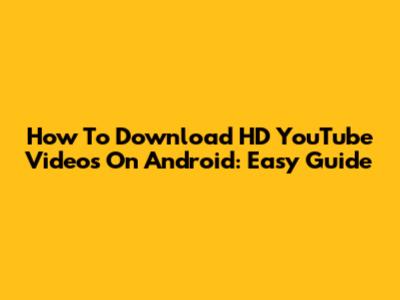 How To Download HD YouTube Videos On Android: Easy Guide