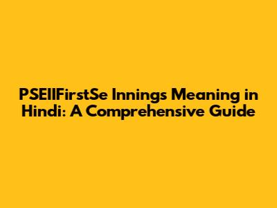 What Exactly Does PSEIIFirstSe Innings Mean?