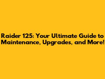 Raider 125 Maintenance: Keeping Your Ride Running Smoothly