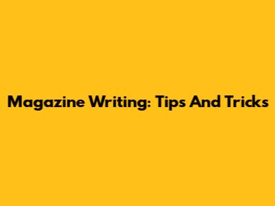 Magazine Writing: Tips And Tricks
