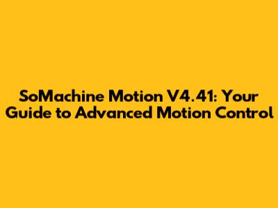 What is SoMachine Motion V4.41? An Overview