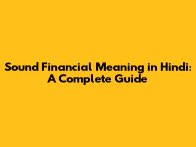 Sound Financial Meaning In Hindi: A Complete Guide