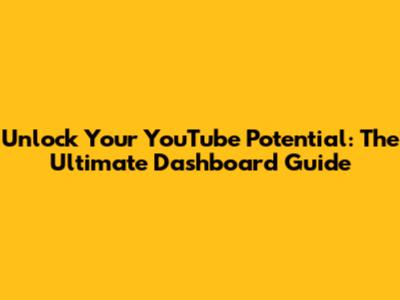 Unlock Your YouTube Potential: The Ultimate Dashboard Guide